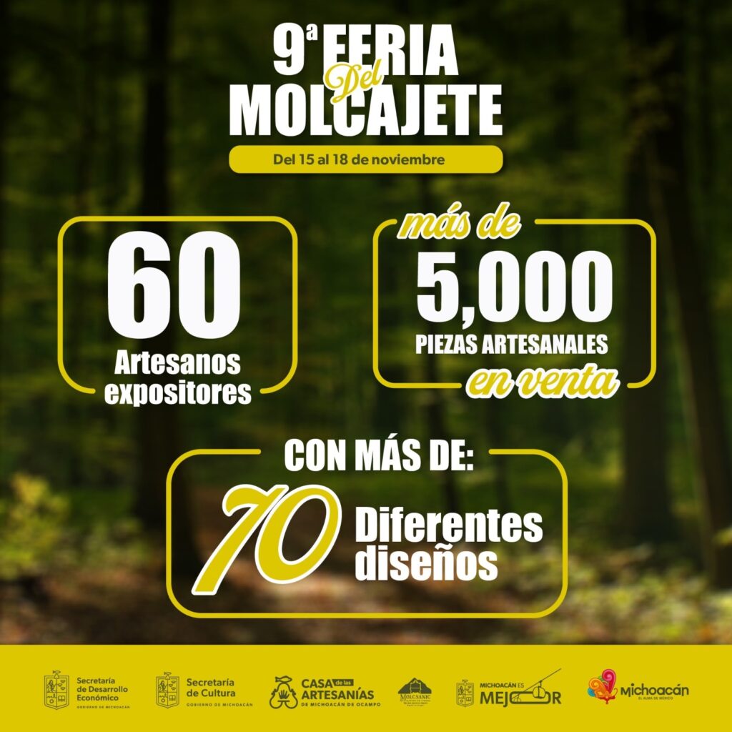 La novena Feria del Molcajete se realizará del 15 al 18 de noviembre en la plaza principal de San Nicolas Obispo, con la participarán de personas 60 artesanos, quienes tendrán una amplia variedad de productos de piedra volcánica, además de los tradicionales molcajetes, de los cuales cuentan con más de 70 diferentes diseños y cuyos costos oscilan entre los 100 y 3 mil 500 pesos.