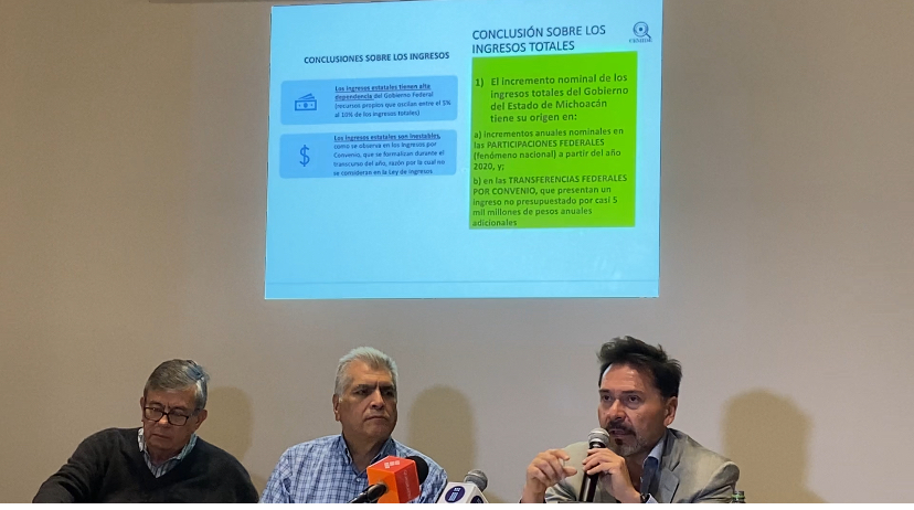 En conferiré prensa en la que también estuvieron presentes los vicepresidentes eel Cemide, Emilio Álvarez Miaja y Enrique Bautista Villegas, lo mismo que Arturo Herrera Cornejo, se resaltó el hecho de que el presupuesto de Michoacán depende en un 49 por ciento de los recursos federales, lo que deja al Estado en un punto de vulnerabilidad, porque si bien cada año hay más recursos, se deben atender cuestiones como la nómina educativa, donde se tiene un déficit importante.