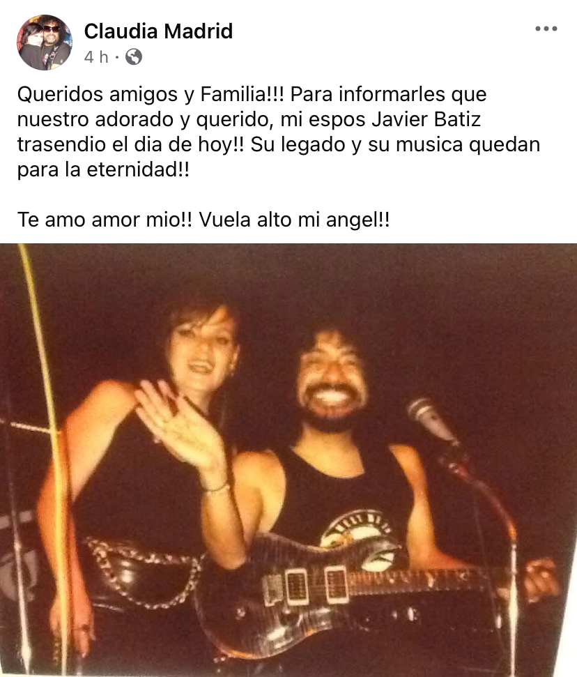 A través de las redes sociales, su esposa Claudia Madrid confirmó el deceso del rockero de 81 años de edad y originario de atinja a, Baja California.