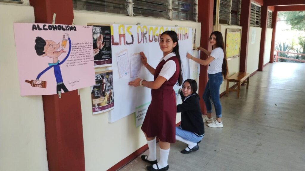Se cuenta con material diseñado para abordar el tema durante 9 semanas, con intervenciones pedagógicas de 10 a 15 minutos, dos o tres veces por semana, disponible en la página https://www.gob.mx/lineadelavida. Estas guías incluyen información para padres, madres de familia y docentes, sobre distintas drogas, como la gravedad del fentanilo y las metanfetaminas, actividades sugeridas y enfoques prácticos.