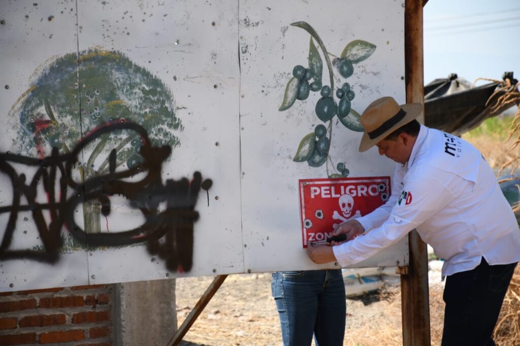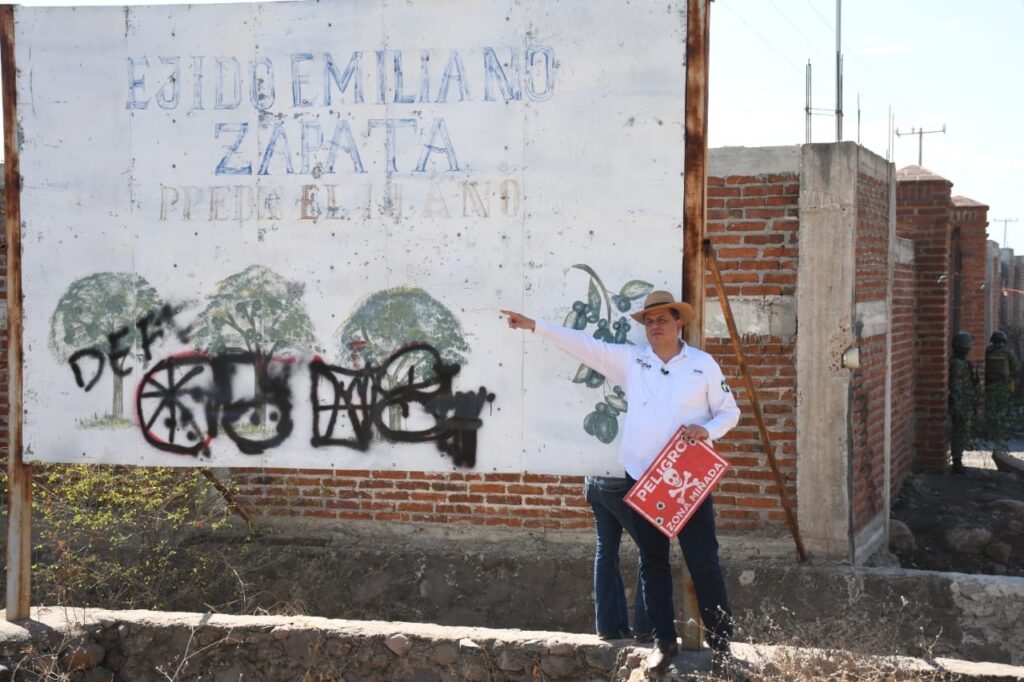 “Es una forma de protestar para que el gobierno sepa que toda la gente está a merced del crimen organizado, de los maleantes, y desde aquí queremos alertar también a los mismos militares”, indicó el dirigente priista, tras colocar letreros en este municipio en los que advierte el riesgo que enfrenta la población al transitar por zonas minadas.