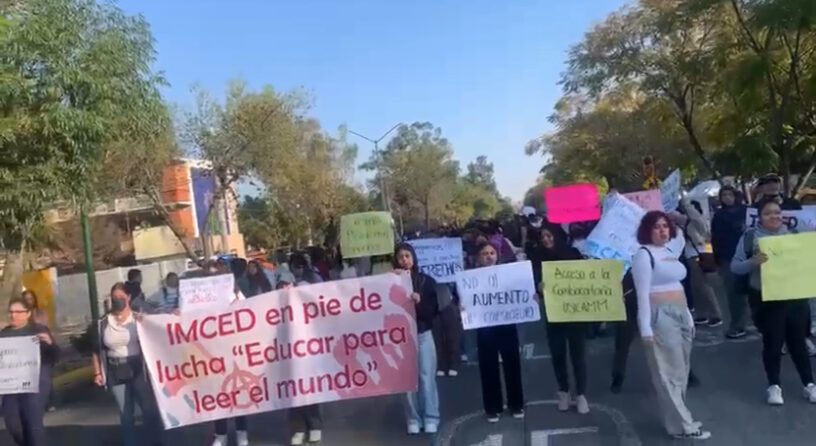 Estudiantes del Instituto Michoacano de Ciencias de la Educación (IMCED), salieron a las calles para exigir la destitución de Julieta Mendoza Guzmán, como directora de dicha institución.