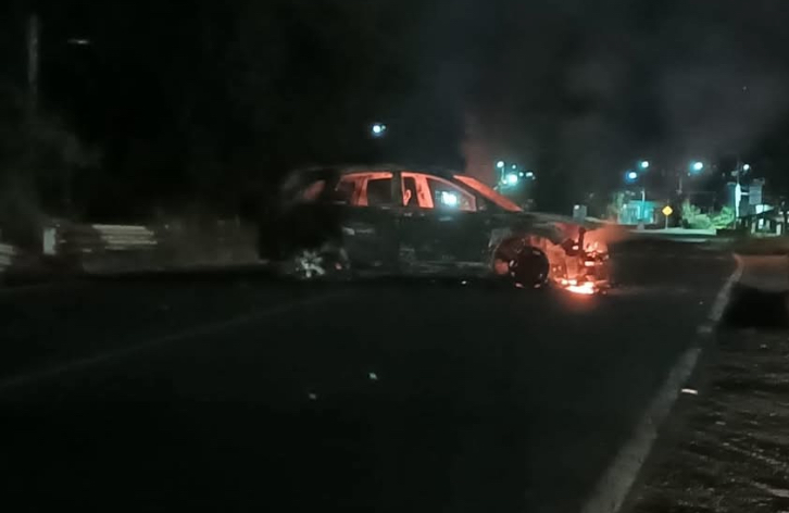En su huida, los delincuentes prendieron fuego a un automóvil sobre la carretera Queréndaro-Maravatío.