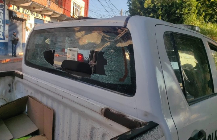 La zona centro de la cabecera municipal quedó convertida en una zona de guerra con patrullas destruidas y edificios y casas con impactos de bala.