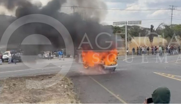 Manifestantes quienes cerraron la carretera Zamora-Tangancícuaro, hace unos minutos quemaron una radio patrulla de Seguridad Vial, dependiente a la Secretaría de Seguridad Pública del Gobierno de Michoacán.