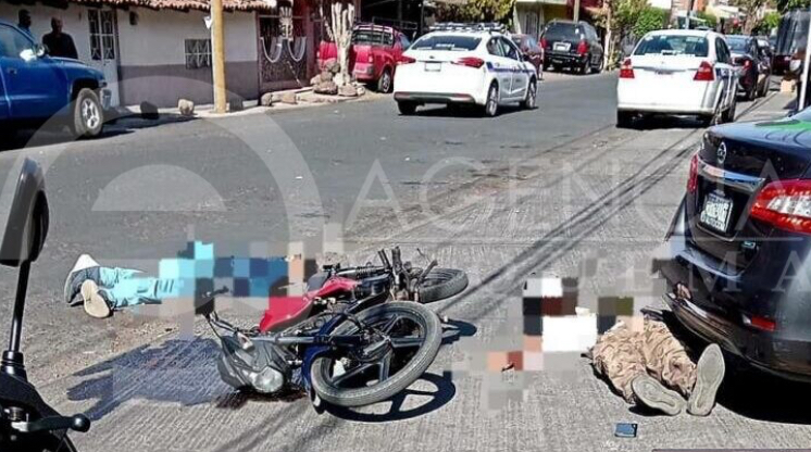 Los ahora occisos se trasladaban a bordo de una motocicleta Italika color negro con rojo, la cual quedó tirada al lado de los dos cuerpos, los cuales presentaban múltiples heridas de arma de fuego, además del tironde gracia.