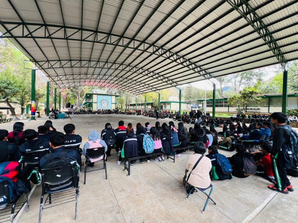 Asimismo, se invitó a las y los 400 estudiantes presentes a mantener ambientes escolares y sociales libres de cualquier tipo de violencia y a crear espacios de convivencia sana entre el estudiantado y el personal docente, por lo que también se les informó sobre a dónde acudir en caso de ser víctimas de un delito.