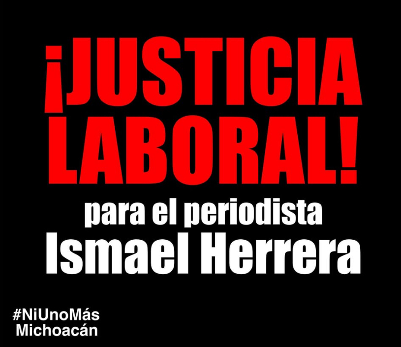 Ante el despido injustificado y sin atención a los derechos del periodista deportivo Ismael Herrera, por parte del Sistema Michoacano de Radio y Televisión (SMRTV), el Colectivo #NiUnoMás exige se brinde justicia laboral para el comunicador, lo que implica el reconocimiento a sus 28 años de labor en la dependencia estatal.