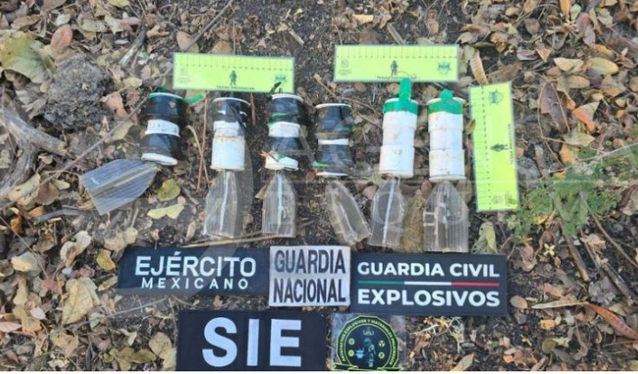 Fuerzas del orden localizaron seis artefactos explosivos en el municipio de Buenavista. Los explosivos fabricados para ser lanzados desde drones, fueron localizados en la localidad de Santa Ana Amatlán.