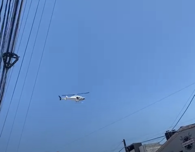 Fue necesario el empleo de un helicóptero para apoyar la operación policial, en la que se aseguraron cinco armas de fuego y equipo táctico con logos de un grupo delincuencial, ademas del vehículo.