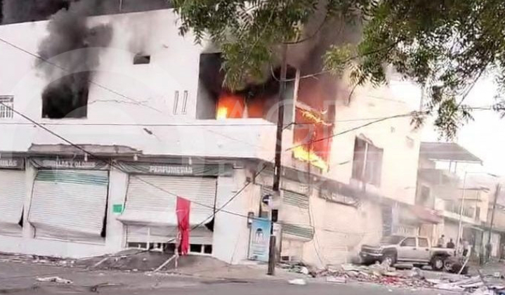 Una explosión en el súper “Cacho’s” la mañana de hoy viernes, conmocionó a vecinos y pobladores en general de la ciudad de Apatzingán, al ver cómo el fuego acababa por completo con el establecimiento.