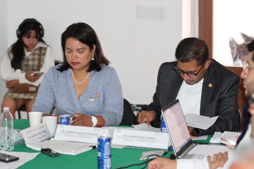 Con la finalidad de salvaguardar la identidad cultural y el patrimonio lingüístico de Michoacán, la Comisión de Derechos Indígenas y Afromexicanos, integrada por los diputados Eréndira Isauro y Conrado Paz, se reunió con representantes de las comunidades, así como de diversas instituciones académicas y gubernamentales para analizar el proyecto de iniciativa de Ley de Derechos Lingüísticos de los Pueblos Indígenas de Michoacán.