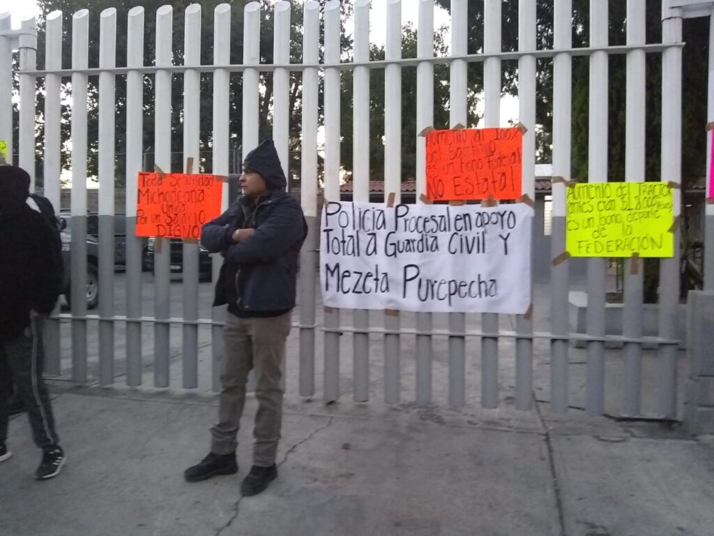 Fueron primero elementos del Agrupamiento del Restablecimiento del Orden Público (AROP), en el acceso a la base sobre el Libramiento de Morelia; luego en el Cuartel Valladolid, así como en las puertas de la Secretaría de Seguridad Pública, en el Centro Penitenciario Lic. David Franco Rodríguez (Mil Cumbres y de Alto Impacto, ubicados en Charo, al igual que en los cuarteles regionales de Uruapan y Lázaro Cárdenas; son al rededor de unos 4 mil 500 elementos los afectados.