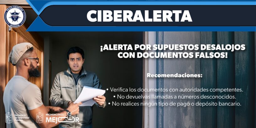 El monitoreo constante del personal de la Policía Cibernética ha detectado quejas ciudadanas sobre la recepción de documentos falsos de desalojo por supuestas deudas, los cuales incluyen varios números de contacto.