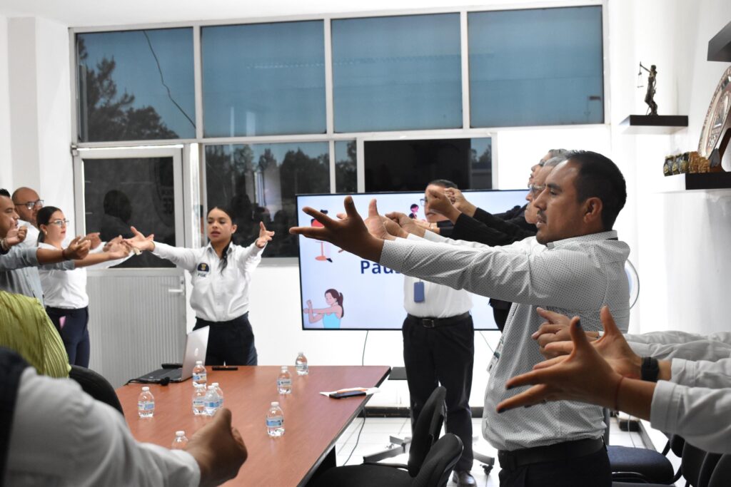 En la actividad, psicólogas especializadas realizaron la dinámica “Pausa activa”, con la que explicaron la importancia de realizar descansos a lo largo de la jornada laboral para despejar la mente y relajar el cuerpo, lo que permitirá ejercer de mejor manera las labores diarias.