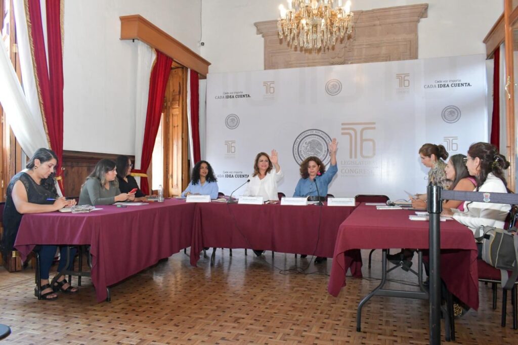 Las legisladoras acompañadas por representantes de la Secretaría de Igualdad Sustantiva y Desarrollo de las Mujeres Michoacanas, luego del estudio y análisis, avalaron la reforma a la Ley de Adquisiciones, Arredramientos y Prestación de Servicios Relacionados con Bienes Muebles e Inmuebles del Estado, la cual será enviada al Pleno de la 76 Legislatura para su votación.