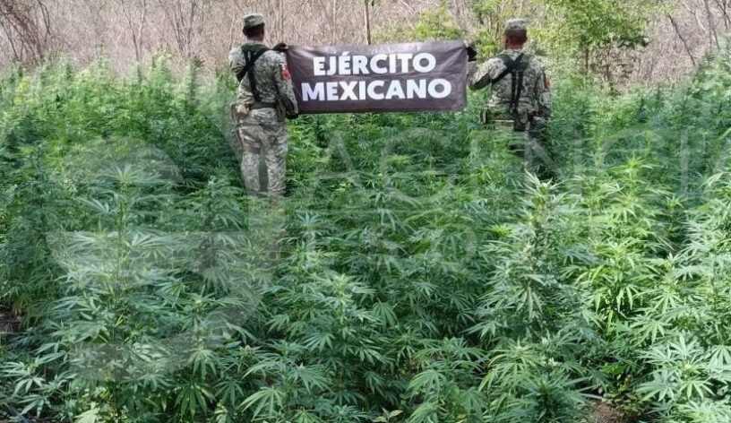 Una hectárea sembrada con mariguana, fue destruida e incinerada por efectivos del Ejército Mexicano en esta localidad.