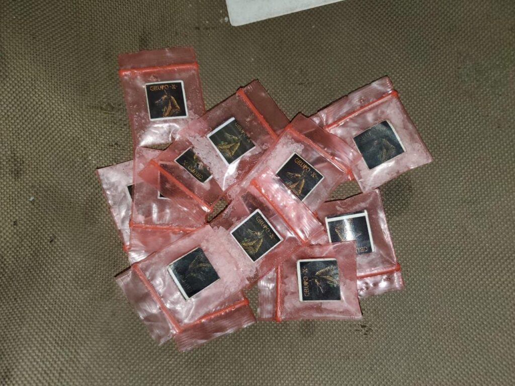 La primera diligencia se llevó a cabo en un inmueble ubicado en la calle Pino Suárez, de la colonia Centro, en el municipio de Queréndaro. En el lugar, personal de la UIPN localizó 37 bolsas que contenían una sustancia cristalina granulosa, con características propias de la metanfetamina, equivalente a 525 dosis.