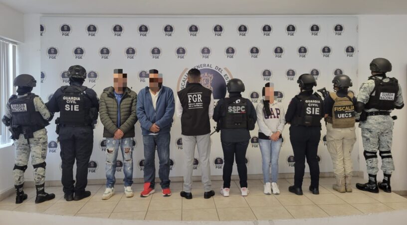 Resultado de la Estrategia Nacional contra la Extorsión que instruyó la presidenta Claudia Sheinbaum Pardo, agentes de las secretarías de Seguridad Pública (SSP) y de Seguridad y Protección Ciudadana (SSPC), así como de las fiscalías General del Estado (FGE) y de la República (FGR), lograron el aseguramiento de dos hombres y una mujer, a la altura de la calle Yucatán, en la colonia Segunda de San Lorenzo.