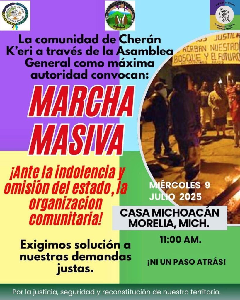 De acuerdo con la Asamblea General de la comunidad de Cherán K’eri, como máximo órgano de gobierno, la manifestación de este miércoles tiene como objetivo poner de relieve la indolencia y omisión del gobierno y exigir solución a las demandas de la población.