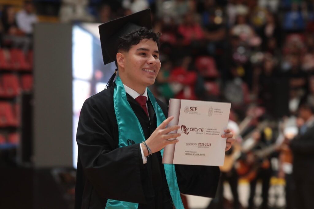 En representación del gobernador Alfredo Ramírez Bedolla, destacó la suma de más hombres y mujeres que han concluido sus estudios de bachillerato, quienes junto a sus familias alcanzaron una meta intermedia, toda vez que próximamente ingresarán al nivel superior para que al término del programa académico que elijan se conviertan en las y los nuevos profesionistas de Michoacán.