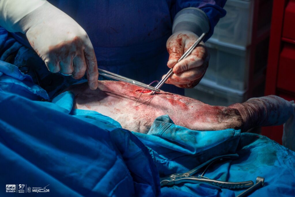 El ejemplar fue trasladado al zoológico en estado crítico y durante la noche fue sometido a una compleja cirugía ortopédica para intentar salvarle la vida. La intervención, en la que participaron especialistas en ortopedia animal, incluyó la colocación de placas de titanio y clavos en sus extremidades; sin embargo, la salud del felino permaneció grave durante toda la noche del miércoles y la mañana de este día.