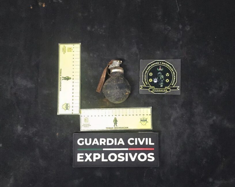 Personal del Agrupamiento Especializado en Artefactos Explosivos y Materiales Peligrosos de la Guardia Civil desactivó una granada de gas en la comunidad de Arantepacua, municipio de Nahuatzen.