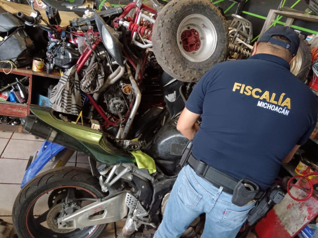 La Fiscalía General del Estado de Michoacán (FGE), a través de la Unidad Contra el Robo al Transporte de la Fiscalía Especializada para la Atención de Delitos de Alto Impacto, llevó a cabo un cateo en un inmueble destinado como taller mecánico para motocicletas, que derivó en el aseguramiento de cuatro unidades con alteraciones en sus medios de identificación.