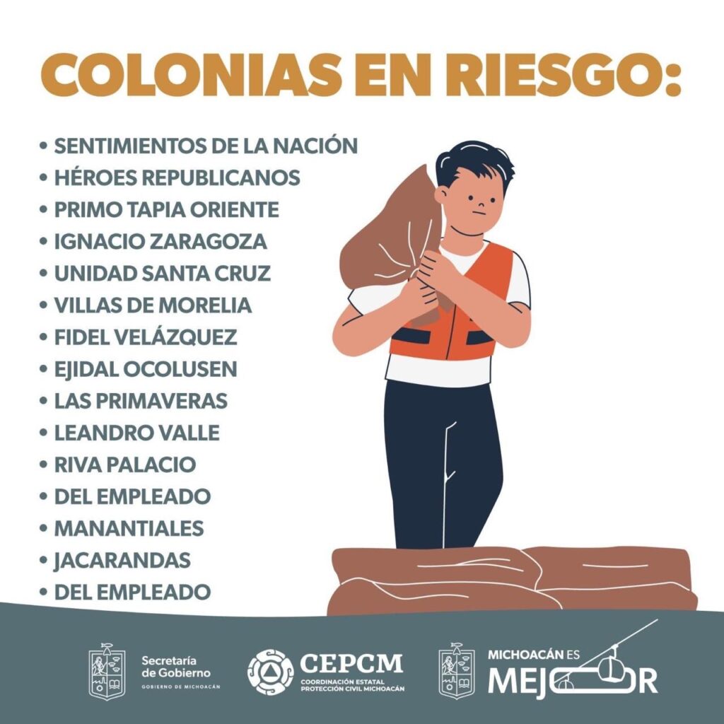 Empero, Protección Civil Estatal mantiene su llamado de alerta sobre al menos 43 colonias de las zonas sur, oriente y poniente de Morelia y pide a sus habitantes no bajar la guardia en medidas de prevención.
