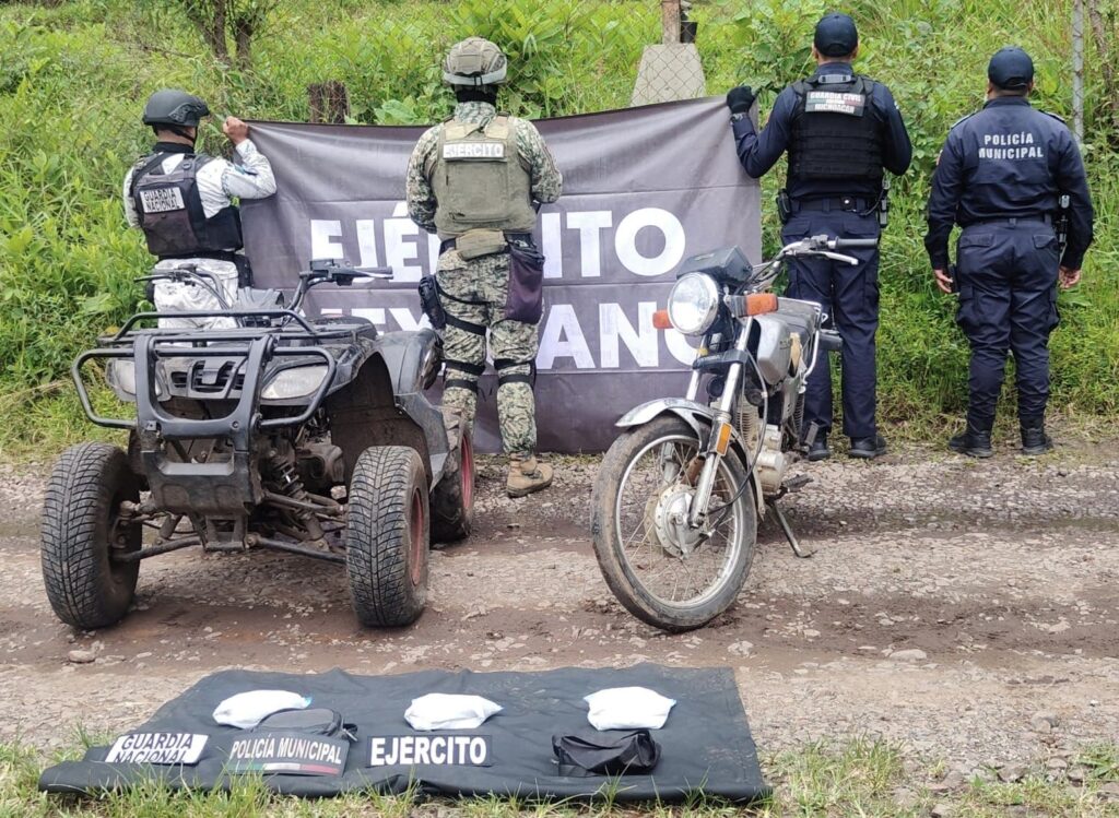 Los uniformados encontraron una mochila sobre una motocicleta, la cual contenía una bolsa con aproximadamente 500 gramos de sustancia granulada con las características de la metanfetamina. Mientras que en una cuatrimoto, localizaron otra mochila con dos bolsas que contenían la citada droga, con un peso estimado en un kilo 500 gramos.