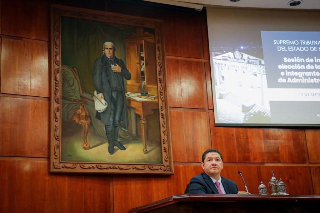 Ante magistradas y magistrados e invitados, expresó “El punto culminante de esta reforma es vanguardista: la elección popular de juezas, jueces, magistradas y magistrados. Nunca antes el pueblo de Michoacán había tenido en sus manos la responsabilidad directa de decidir quiénes habrían de impartir justicia en su nombre.”