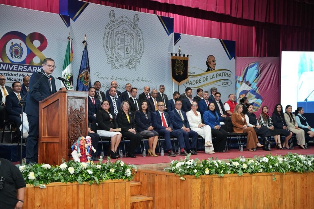 Afirmó que hoy es un día histórico, ya que un gran número de estudiantes recibirán su tercer o cuarto Premio Padre de la Patria, lo que habla de la entrega y el esfuerzo que realizan pero también del futuro que representan. “La Universidad Michoacana de San Nicolás Hidalgo se siente de verdad orgullosa de todas y todos ustedes y nuestro país espera lo mejor de las universidades públicas”.