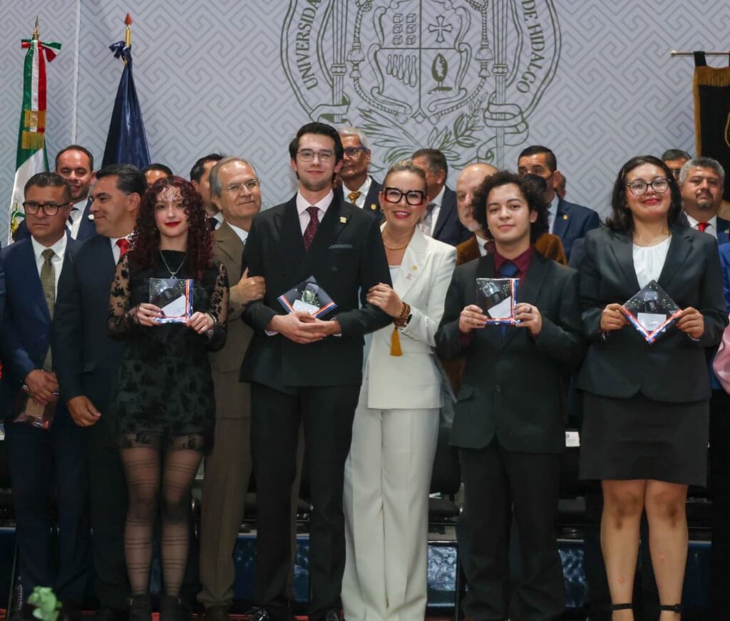 La rectora agradeció a quienes se desplazaron desde otros municipios del estado para asistir al evento, tras referir que este galardón no marca el final de un camino sino el comienzo de muchas otras trayectorias de éxito, y refirió que al recibir este reconocimiento las y los jóvenes tienen una gran responsabilidad de seguir siendo ejemplo, de inspirar a las siguientes generaciones “y de demostrar allá afuera su experiencia con todo el conocimiento que adquirieron aquí. Gracias por amar a nuestra Universidad y por formar parte de ella”, apuntó.
