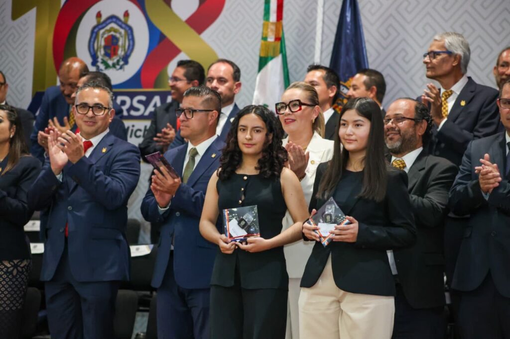 De igual forma, apuntó que, en esta edición se reconoce a 481 estudiantes la Universidad Michoacana y de escuelas incorporadas, lo que dijo, es una señal de esperanza y de futuro y refleja que las y los alumnos nicolaitas están tomando el liderazgo académico con fuerza, talento y determinación y refleja también, que la comunidad universitaria avanza hacia una nueva etapa de igualdad, mérito y reconocimiento del esfuerzo compartido. “La Universidad puede decir con orgullo que está formando a estudiantes de alto rendimiento académico que colaborarán con el desarrollo tecnológico, científico y humano de nuestro país”.