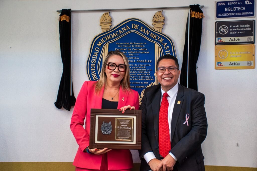 En el marco de la conmemoración del 65 aniversario de la Facultad de Contaduría y Ciencias Administrativas (FCCA), se hizo un reconocimiento a la trayectoria de la rectora de la Universidad Michoacana de San Nicolás de Hidalgo (UMSNH), Yarabí Ávila González, como egresada de esta dependencia.