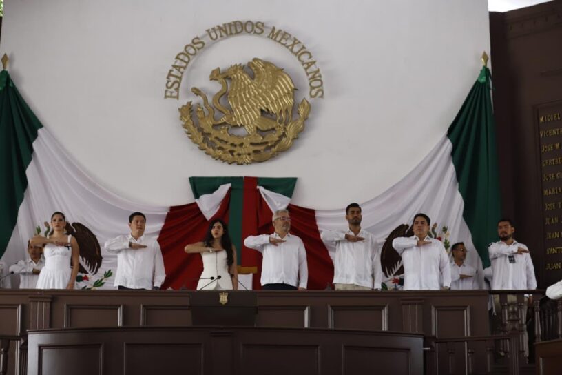 En el marco de CCXI Aniversario de la Sanción del Decreto Constitucional para la Libertad de la América Mexicana, las y los diputados, con la presencia de los titulares de los Poderes Ejecutivo y Judicial del Estado, reconocieron la labor del originario de la capital moreliana, hijo de padres migrantes provenientes de Sola