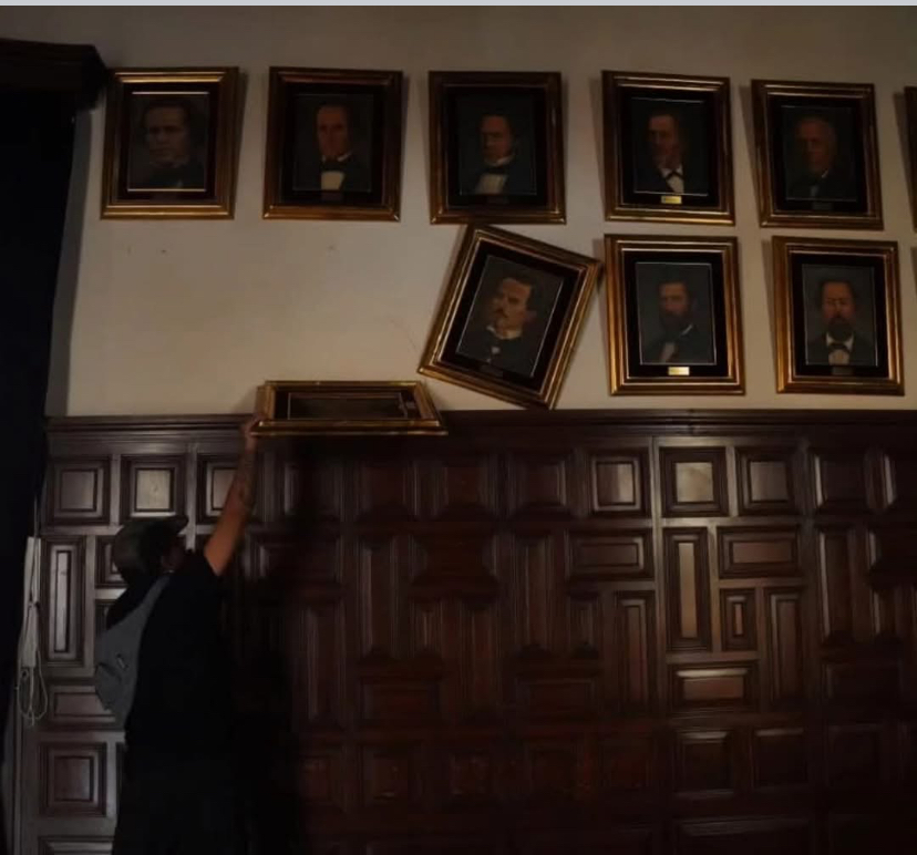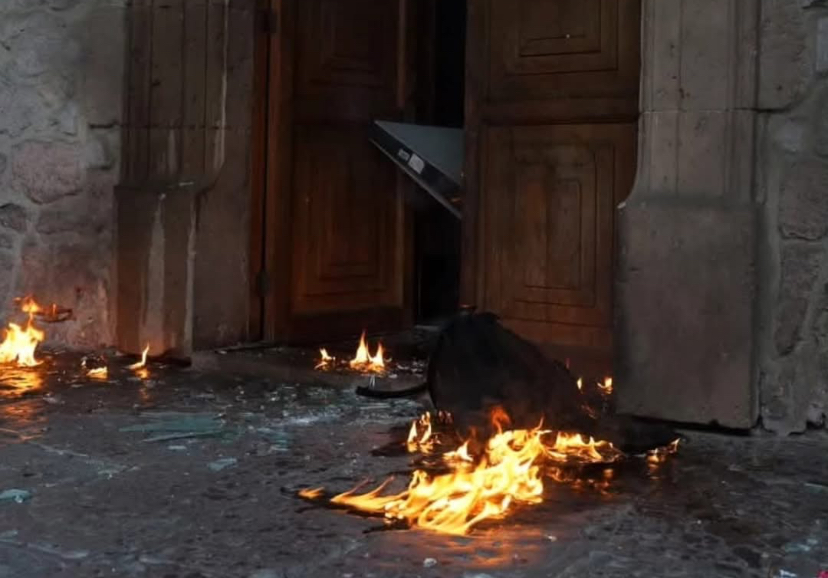 Al llegar a Palacio de Gobierno, los presentes realizaron un minuto de silencio en memoria de Carlos Manzo. Sin embargo, minutos después entre gritos de protesta un grupo de manifestantes irrumpió en el inmueble, forzando las puertas de acceso y causando destrozos en el interior, incluyendo la rotura de ventanas y el lanzamiento de muebles hacia el exterior.