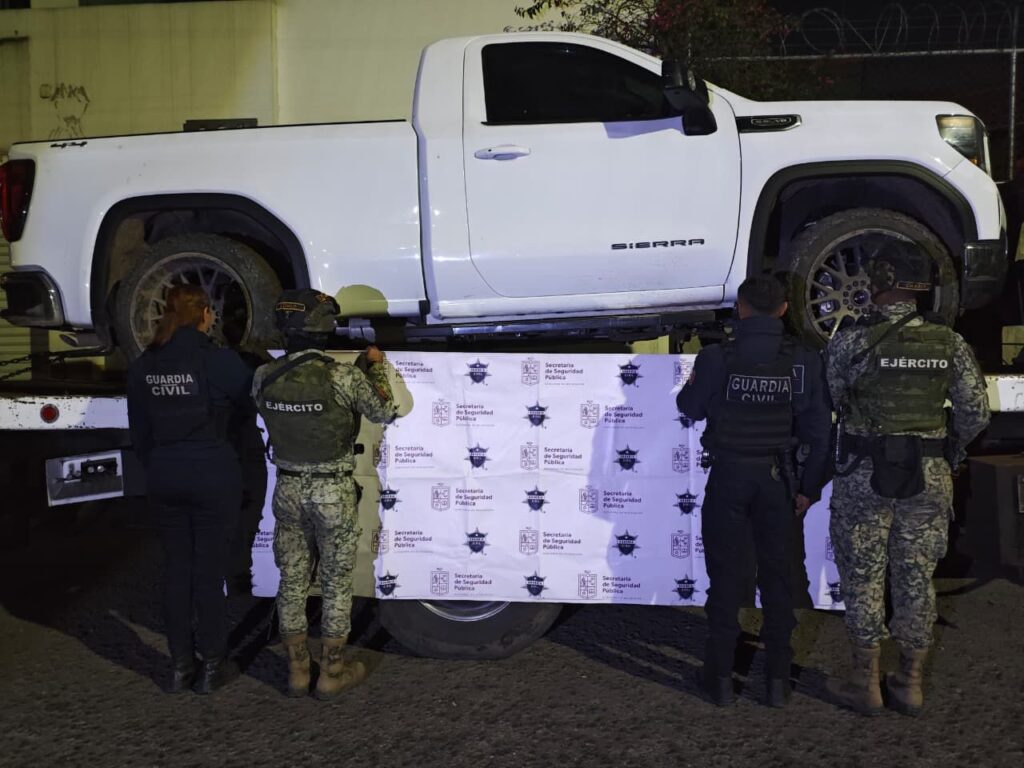 Los agentes de la Guardia Civil y del Ejército Mexicano aseguraron una camioneta marca Toyota, donde localizaron dos playeras con leyendas alusivas a una célula criminal. Las unidades y todo lo decomisado fue puesto a disposición de las autoridades competentes para llevar a cabo las diligencias de ley.