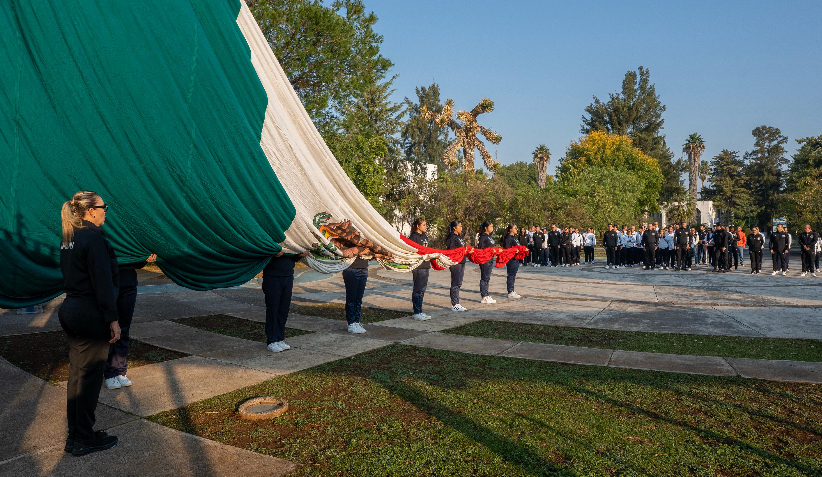 Flanqueada por integrantes del Gabinete Legal y Ampliado, la rectora izó el Lábaro Patrio, y con orgullo y respeto las y los nicolaitas entonaron el Himno Nacional para que posteriormente la multigalardonada Banda de Guerra de la institución diera paso a la marcha “Crisol de Pensadoras y Pensadores”.