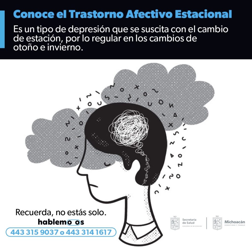 Con la llegada de la temporada invernal, en la cual hay menor exposición solar, se registra el incremento de casos de trastorno afectivo estacional (TAE), por lo que la Secretaría de Salud de Michoacán (SSM) exhorta a la población a estar atenta a los cambios de ánimo, y recuerda que tiene a su disposición una sólida red de apoyo profesional para la salud mental.