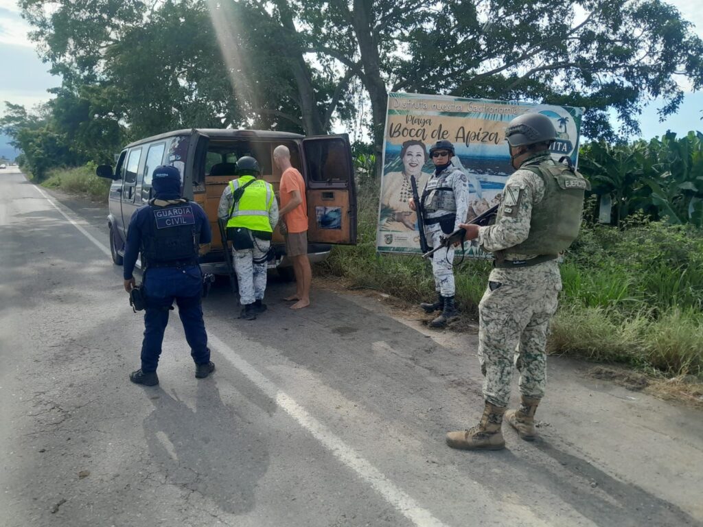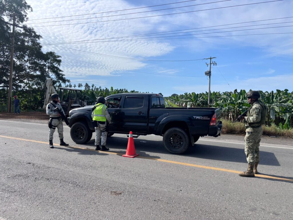 Tras el acto terrorista del pasado sábado en Coahuayana, la Secretaría de Seguridad Pública (SSP), en coordinación con la Secretaría de la Defensa Nacional (Defensa) y la Guardia Nacional (GN), mantiene operativos estratégicos en la zona del crucero Boca de Apiza, en el municipio de Coahuayana, con el objetivo de reforzar la presencia institucional y disuadir actividades ilícitas en los límites con el estado de Colima.
