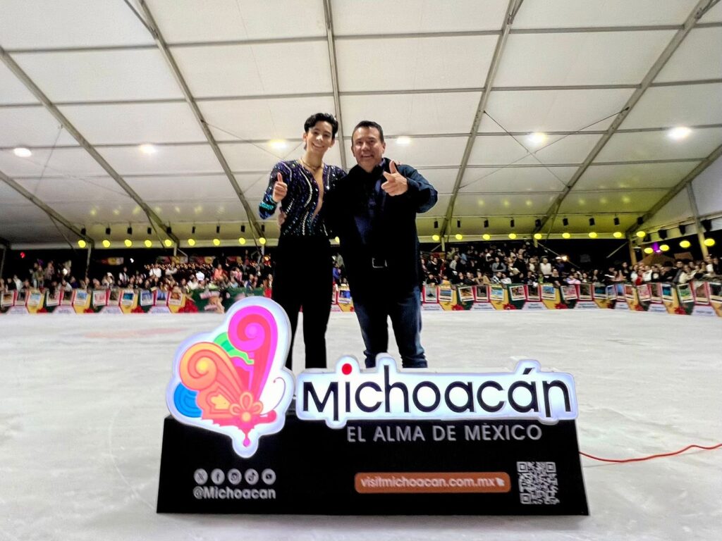 Donovan Carrillo Suazo llegó a Michoacán para inaugurar la pista de hielo de la Villa Navideña que se encontrará abierta al público hasta el próximo 7 de enero de 2026 en el Centro de Convenciones y Exposiciones de Morelia (Ceconexpo).