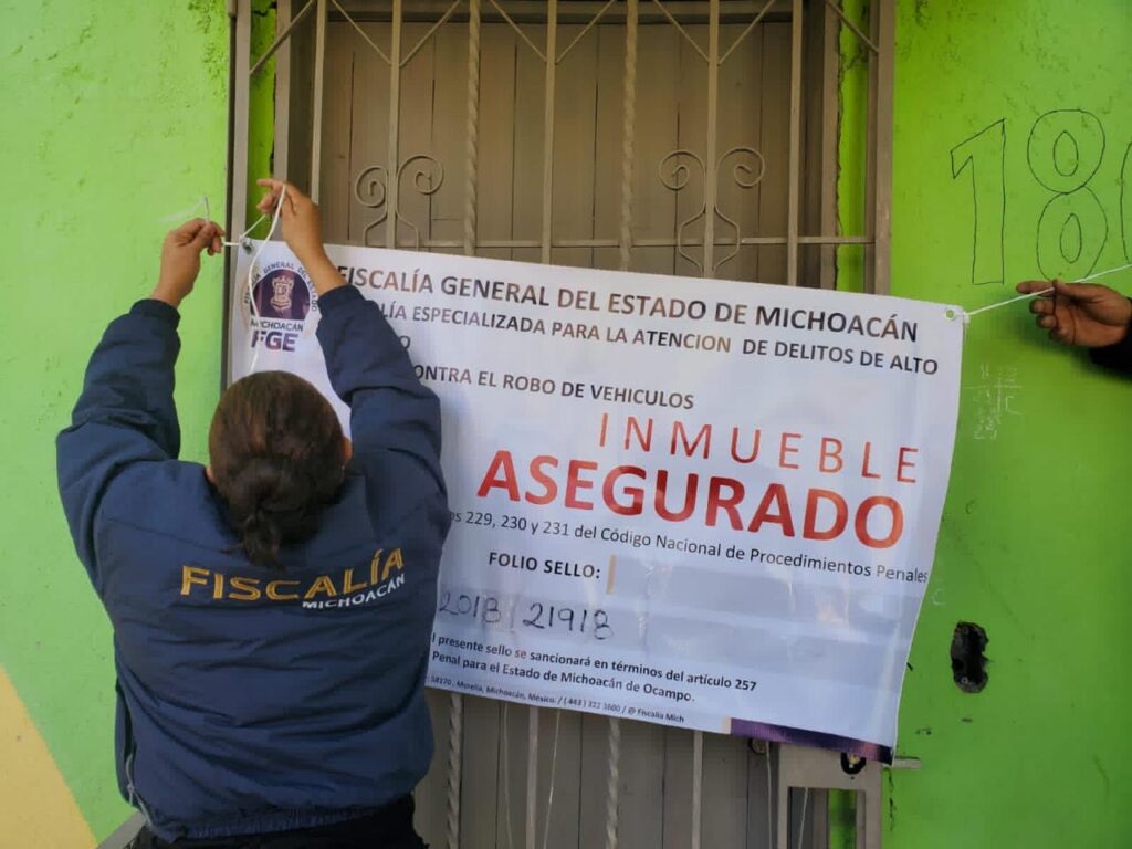 Resultado de investigaciones relacionadas con el robo de vehículos, la Fiscalía General del Estado de Michoacán (FGE), a través de la Fiscalía Especializada en Robo de Vehículos y al Transporte, ejecutó un cateo en un inmueble ubicado en la calle Lomas de Anáhuac, colonia Ignacio Chávez, en esta ciudad. En el lugar se aseguraron autopartes y placas vehiculares.