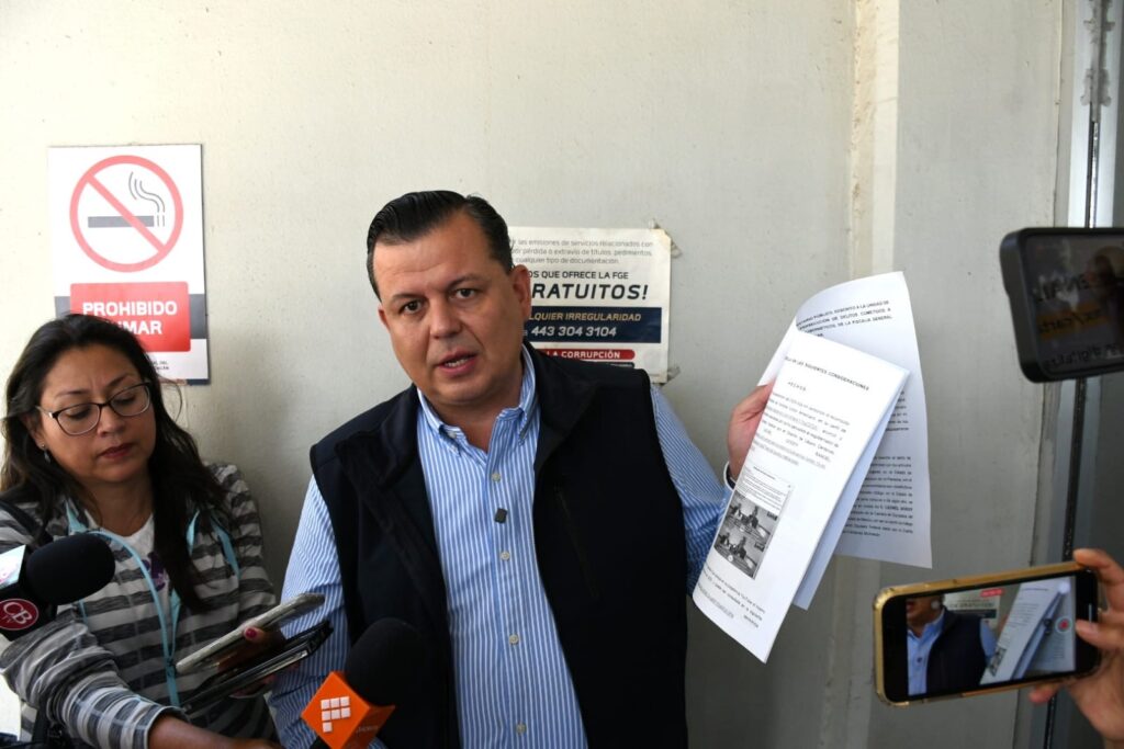 El dirigente priísta se presentó ante la Fiscalía General del Estado de Michoacán para presentar la querella correspondiente en contra del exmandatario, bajo el supuesto de ataques al honor y los que resulten.