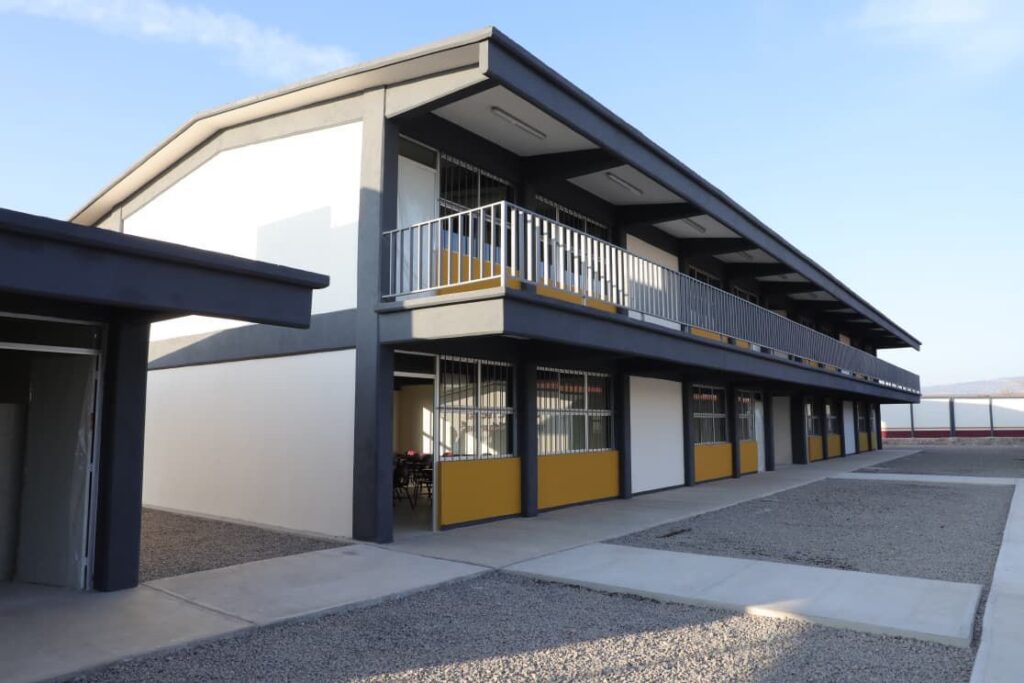 En el caso de la Secundaria Técnica 168, agregó que se construyeron 16 aulas, barda perimetral, andadores, jardineras, plaza cívica, cancha de usos múltiples, comedor, laboratorio, aula de medios, arcotecho y pórtico de acceso con lo que se permitirá ampliar la matrícula de este plantel.