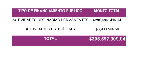 De acuerdo con lo aprobado, el financiamiento públicoqueda de la siguiente manera: