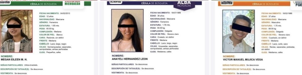 La Fiscalía General del Estado de Michoacán (FGE) informa que el pasado 17 de enero de 2026, se inició una carpeta de investigación a través de la Fiscalía Especializada en Desaparición Forzada y Desaparición Cometida por Particulares, con motivo del reporte de la desaparición de Víctor Manuel M.V., Anayeli H.L. y la adolescente de iniciales M.E. M.H., presentada por sus familiares.