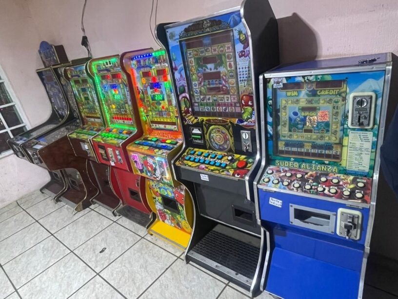 Producto de los cateos, se aseguraron máquinas tragamonedas que se encontraban instaladas y en funcionamiento en domicilios ubicados en distintas colonias, entre ellas: Ejército Mexicano, 28 de Octubre, Ampliación Tierra y Libertad, Ex de San Lázaro de las Catarinas, Ramón Farías, San Francisco, Balcones, La Mora, Francisco, Sol Naciente y Laureles, así como otra colonia sin nombre.