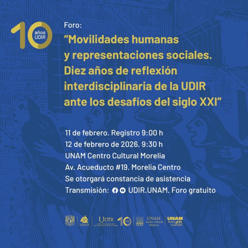 El encuentro tendrá verificativo los días 11 y 12 de febrero en el UNAM Centro Cultural Morelia (Av. Acueducto 19 Colonia Centro, Morelia); con ello se marca el aporte académico y científico de la primera década de la UDIR y el inicio de una nueva etapa de ampliación como referente de investigación y articulación a nivel nacional e internacional.