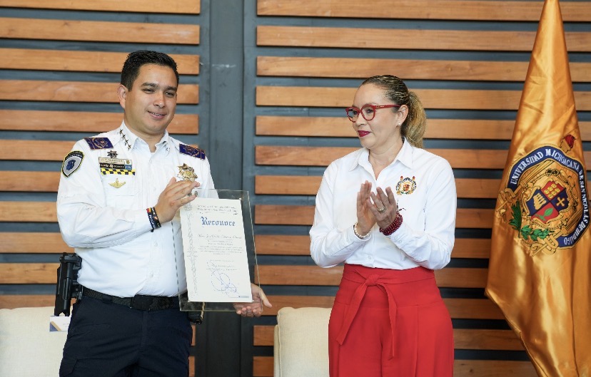 De igual forma, la rectora Yarabí Ávila, destacó la presencia del secretario de Seguridad y Protección Ciudadana de Morelia, José Pablo Alarcón, quien dijo, motiva a las y alumnos, en este marco, agradeció el apoyo que la UMSNH ha tenido por parte de la dependencia municipal cuando se ha requerido, al tiempo que, solicitó seguir contando con su respaldo para que las y los jóvenes nicolaitas caminen tranquilos en las calles.